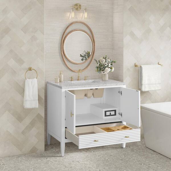 Myrrin 36.0 in. W x 23.5 in. D x 34.06 in. H Single Bathroom Vanity Bright White and Eternal Jasmine Pearl Quartz Top