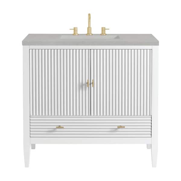 Myrrin 36.0 in. W x 23.5 in. D x 34.06 in. H Single Bathroom Vanity Bright White and Eternal Serena Quartz Top