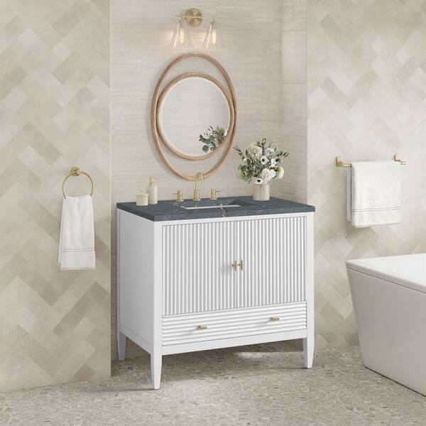 Myrrin 36.0 in. W x 23.5 in. D x 34.06 in. H Single Bathroom Vanity Bright White and Parisien Bleu Quartz Top