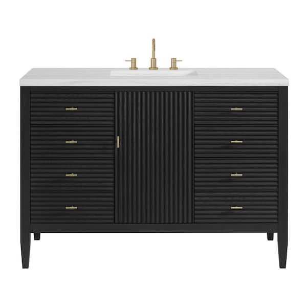 Myrrin 48.0 in. W x 23.5 in. D x 34.06 in. H Single Bathroom Vanity Carbon Oak and Arctic Fall Solid Surface Top