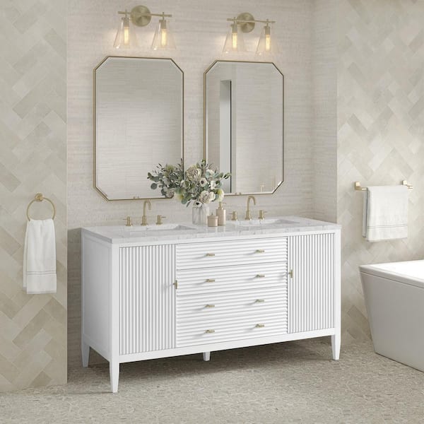 Myrrin 60.0 in. W x 23.5 in. D x 34.06 in. H Double Bath Vanity in Bright White with Eternal Jasmine Pearl Quartz Top