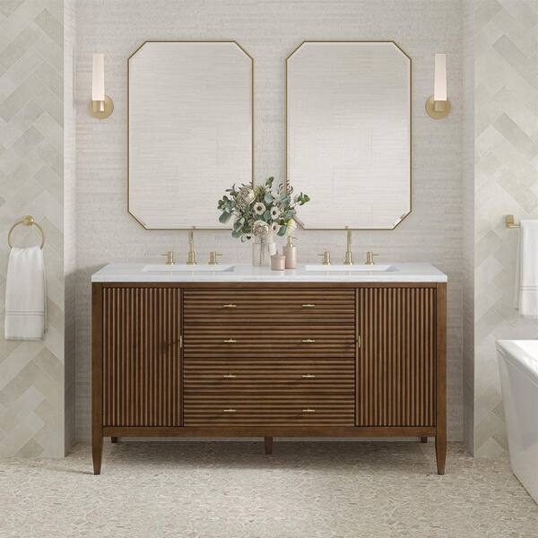 Myrrin 60.0 in. W x 23.5 in. D x 34.06 in. H Double Bath Vanity in Mid-Century Walnut with Arctic Fall Solid Surface Top