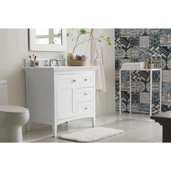 Palisades 36.0 in. W x 23.5 in. D x 35.3 in. H Bathroom Vanity in Bright White with Ethereal Noctis Quartz Top