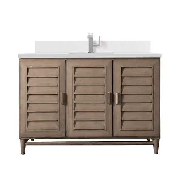Portland 48.0 in. W x 23.5 in. D x 34.3 in. H Bathroom Vanity in Whitewashed Walnut with White Zeus Silestone Quartz Top