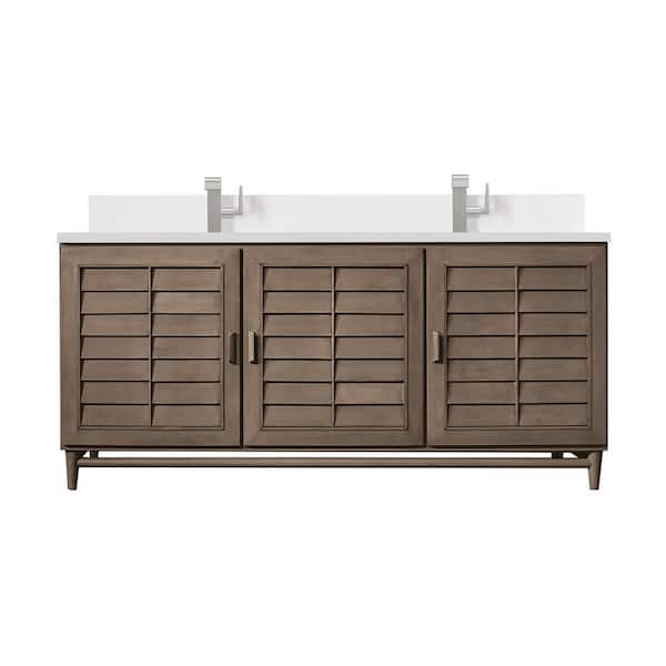 Portland 72.0 in. W x 23.5 in. D x 34.3 in. H Double Bathroom Vanity in Whitewashed Walnut with White Zeus Quartz Top