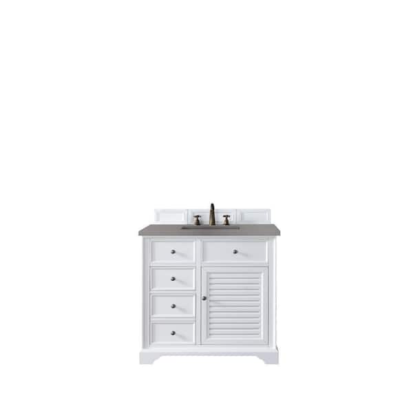 Savannah 36 in. W x 23.5 in.D x 34.3 in.H Single Vanity in Bright White with Quartz Top in Grey Expo