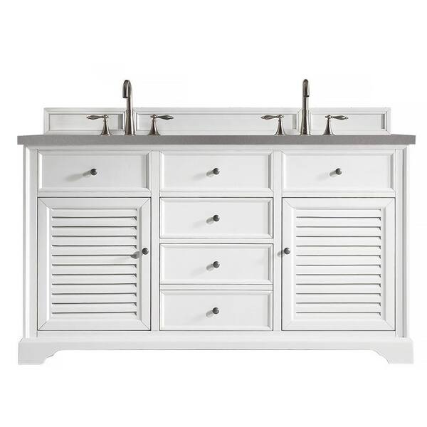 Savannah 60 in.W x 23.5 in.D x 34.3 in. H Double Vanity in Bright White with Quartz Vanity Top in Grey Expo