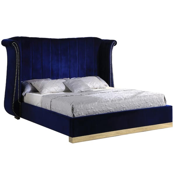 Jamie Blue Queen Platform Bed with Gold Accents