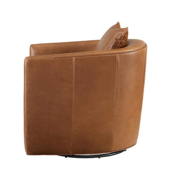 Jamisan Brown Top Grain Leather Swivel Barrel Accent Chair