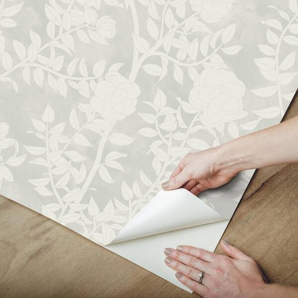 Jardin Dove Grey Non-woven Paper Peel and Stick Matte Wallpaper Roll 30.75 Sq. ft.
