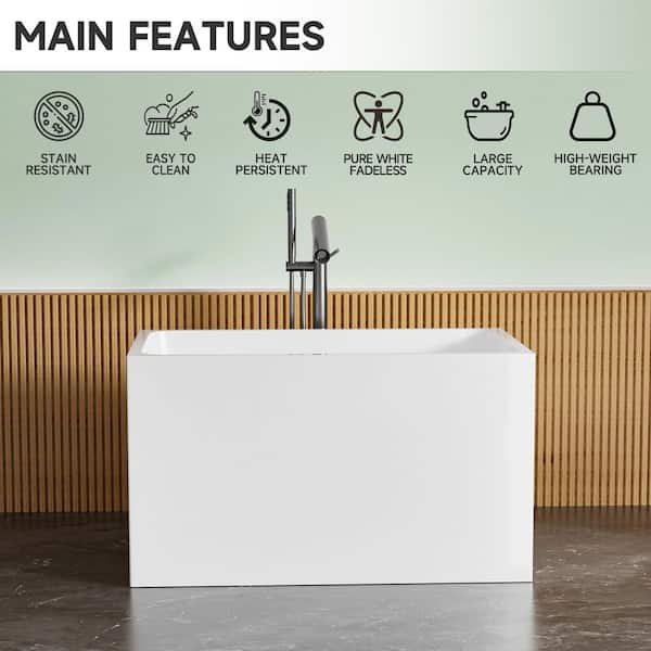43.3 in. x 27.5 in. Acrylic Freestanding Rectangle Soaking Bathtub with Seat, Chrome Overflow Pop-Up Drain in White