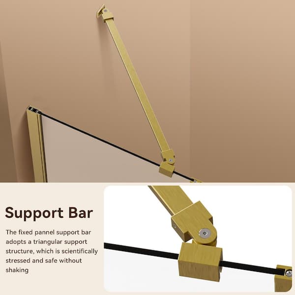 43 in. W x 58 in. H Folded-Fixed Tub Door Frameless Tub Shower Door in Brushed Gold with 1/4 in. Tempered Clear Glass