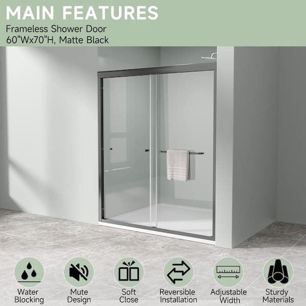 Double Bypass Sliding Shower Door, Semi-Frameless, 56-60 in. W x 72 in. H, Matte Black Finish with Tempered Glass