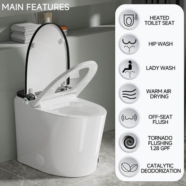 Elongated Electric 1.28 GPF Smart Toilet Bidet Seat in White with Front/Rear Wash Remote Control and Foot Kick Operation