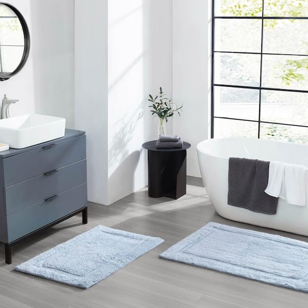 Lydia Border Pale Blue 17 in. x 24 in. 20 in. x 32 in. Solid Color Cotton 2-Piece Bath Mat Set