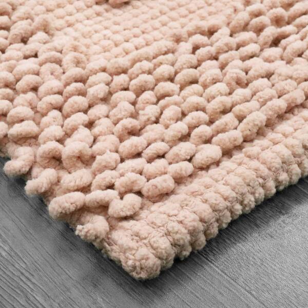 Sophie Border Pink Dusty Rose 17 in. x 24 in. Cotton Textured Bath Mat