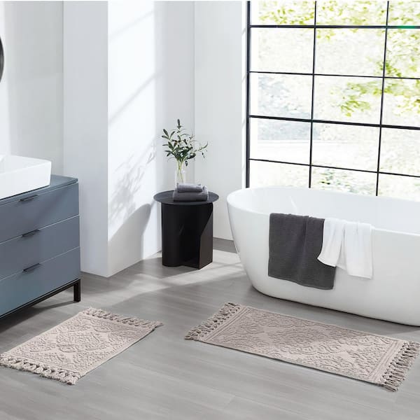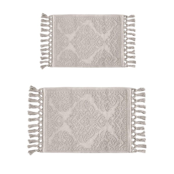 Ricardo Cotton Fringe 17 in. x 31 in./21 in. x 41 in. 2-Piece Bath Rug Set in Light Grey