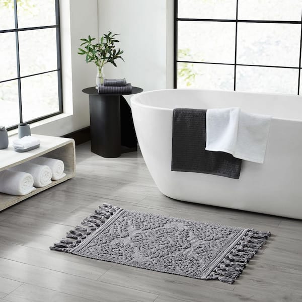 Ricardo Cotton Fringe 21 in. x 41 in. Bath Rug in Dark Grey