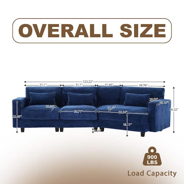 123 in. Navy Curved Corduroy Sectional Sofa Seater for 3
