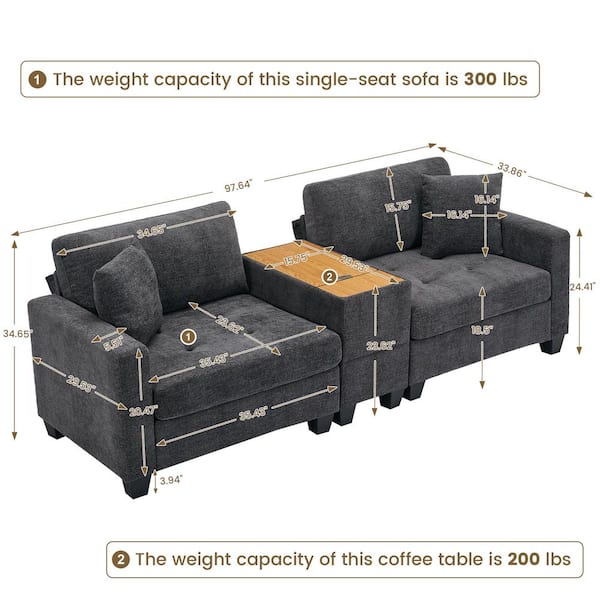Sunderland 97.64 in. Chenille Dark Gray Tufted Sectional Sofa Couch with Side Table Split Left and Right Seats 2-Pillows