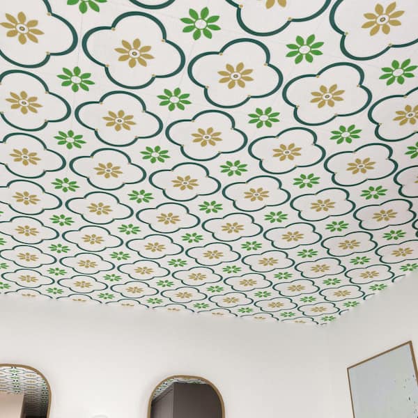 1 ft. x 1 ft. Peel and Stick Ceiling Tile with Green Flower, 12 Pcs Glue up Decorative Ceiling Tile, 12 sq. ft. /case