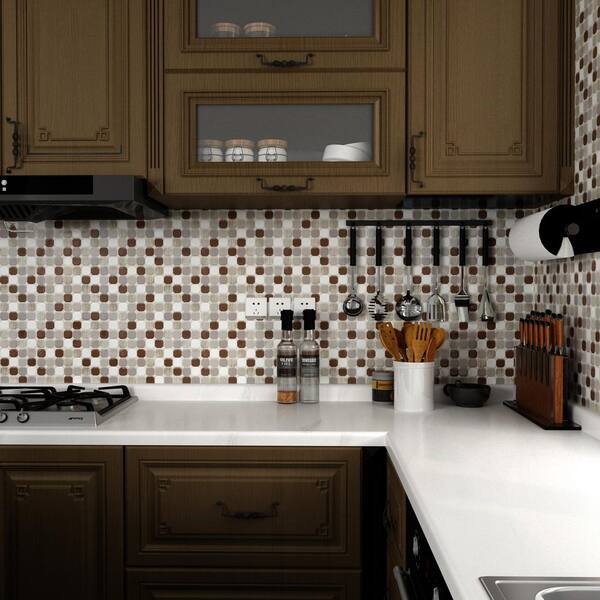 12 in. W x 12 in. L x 0.04 in. H Vinyl Peel and Stick Wall Tile Backsplash in Multi-Colour for Kitchen (10-Pack)