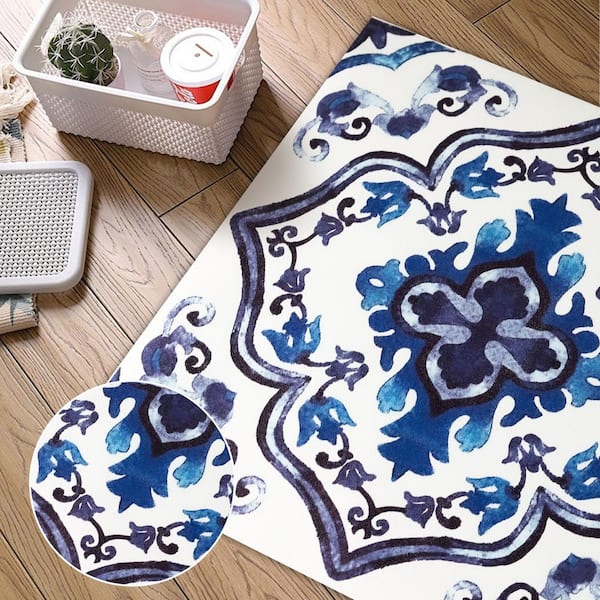 12 in. X 120 in. 4 MIL Blue Peel and Stick Vinyl Flooring Roll, Vinyl Sheet Flooring, Cut to Length, Water Resistant