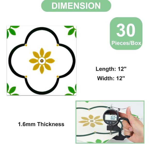 12 in. x 12 in. x 11 MIL Vinyl Peel and Stick Backsplash, 30-Pack Floor and Wall Tile for Kitchen, Green (30 sq. ft.)