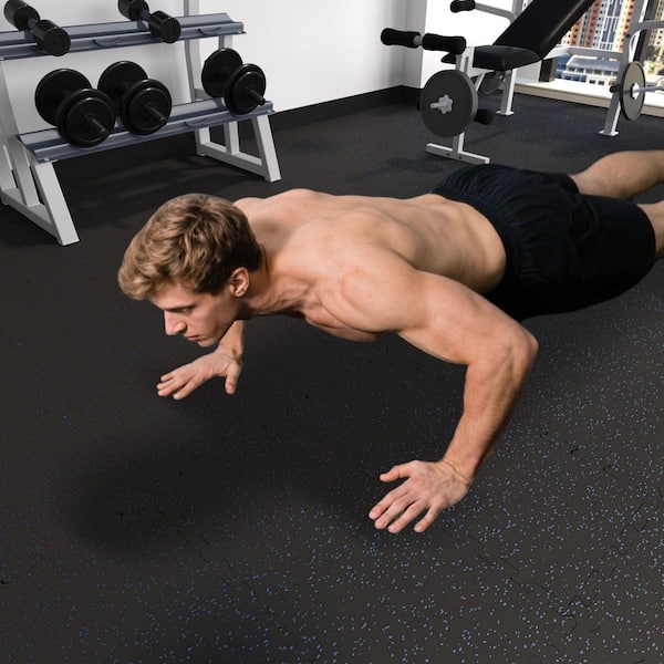 24 in. x 24 in. x 0.55 in. Thick Rubber EVA Gym Flooring Tiles, Interlocking Anti-Fatigue Tiles, Black/Blue (48 sq. ft.)