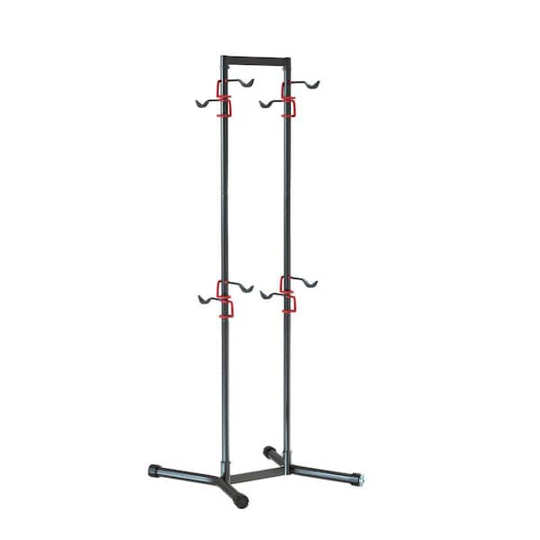4-Bike Freestanding Bicycle Storage Rack with 8 Adjustable Hooks, Vertical Garage Bike Racks, Black Steel