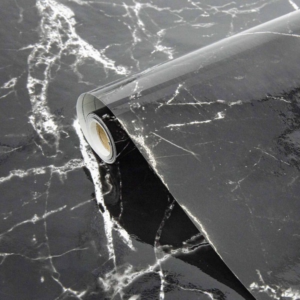 Black Marble Peel and Stick Wallpaper Contact Paper, Self-Adhesive Covering Paper for Kitchen, 24 in. x 197 in.