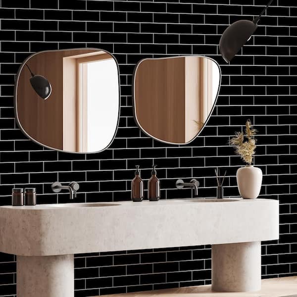 2 in. x 8 in. Subway Brick Black 10.625 in. x 15.875 in. Matte and Glossy Ceramic Mosaic Wall Tile (8.2 sq. ft. /Case)
