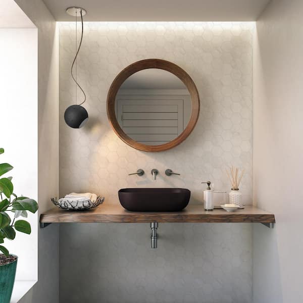 3 in. Hexagon Ivory Light 9.75 in. x 9.625 in. Textured Matte Porcelain Wall and Floor Mosaic Tile 0.651 sq. ft./Each