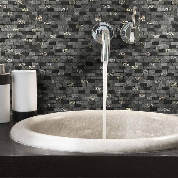 Mystical Mini Brick Grey 12 in. x 11.875 in. Interlocking Mixed Glass and Basalt Mosaic Tile (0.989 Sq.Ft./ Each)