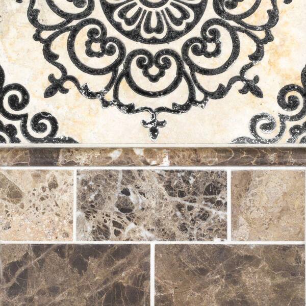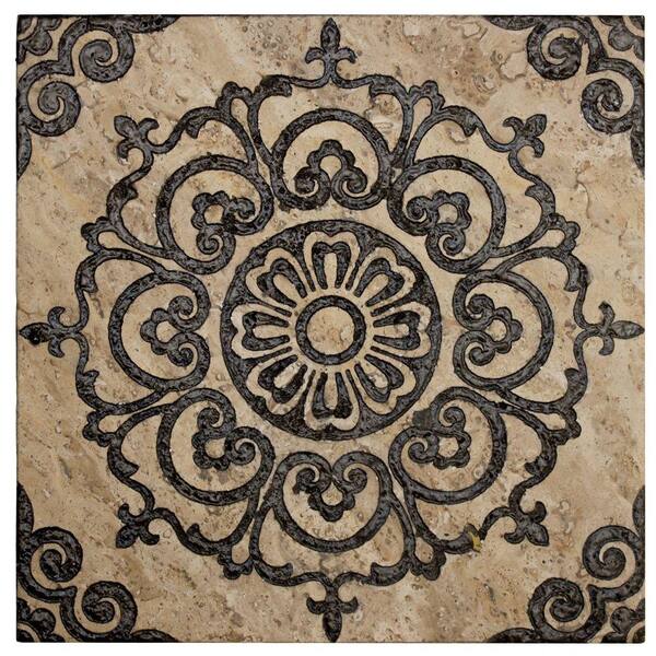 Saffron Etched Panel 12 in. x 12 in. x 10 mm Travertine Wall Tile