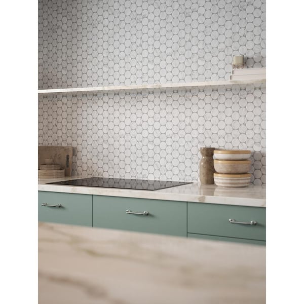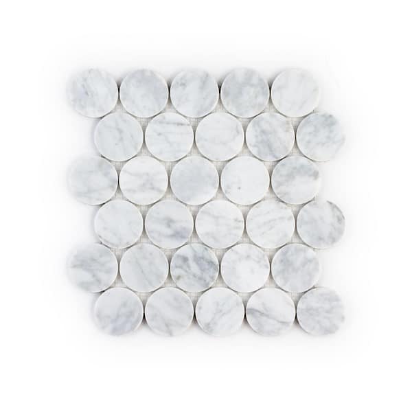 Sea Salt Round Venato White 11.125 in. x 11.125 in. Penny Honed Marble Wall and Floor Mosaic Tile (0.859 sq. ft./Each)