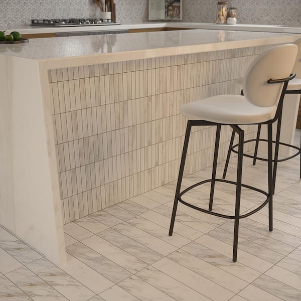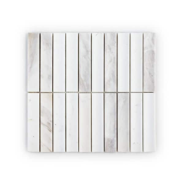 Seismic Volakas White 11.625 in. x 12.375 in. Fluted Honed Marble Wall Mosaic Tile (0.999 sq. ft./Each)