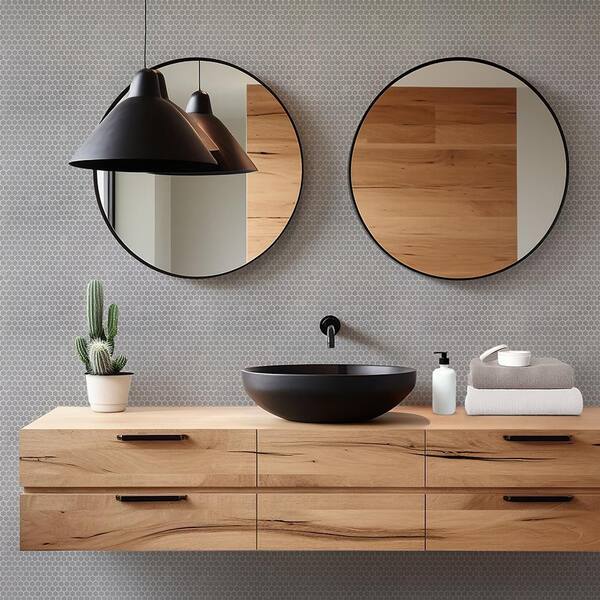 Take Home Tile Sample - 1 in. Hexagon Grey 4 in. x 4 in. Matte Glass Wall and Floor Mosaic Wall Tile Sample