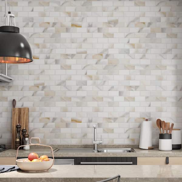 Take Home Tile Sample - 2x4 Subway Calacatta Gold/White 4 in. x 4 in. Textured Matte Porcelain Wall/Floor Mosaic Tile