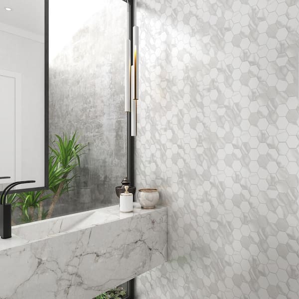 Take Home Tile Sample - 3" Hexagon Statuario White 4 in. x 4 in. Textured Matte Porcelain Wall/Floor Mosaic Tile Sample