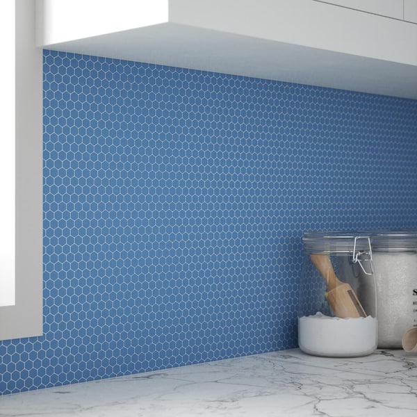 Take Home Tile Sample - 5/8 in. Muze Hexagon Blue 4 in. x 4 in. Hexagon Matte Glass Mosaic