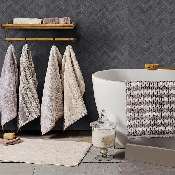 Take Home Tile Sample - Basalt Herringbone Gray 4.75 in. x 4.38 in. Honed Basalt Mosaic