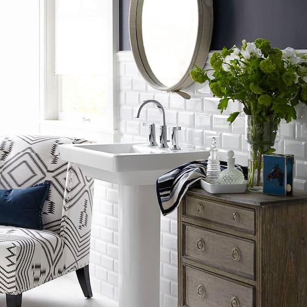 Take Home Tile Sample - Fresh White 3 in. x 6 in. Glossy Subway Beveled Ceramic
