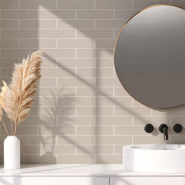 Take Home Tile Sample - Gloss Taupe 2.5 in. x 5 in. Ceramic Wall Tile Sample