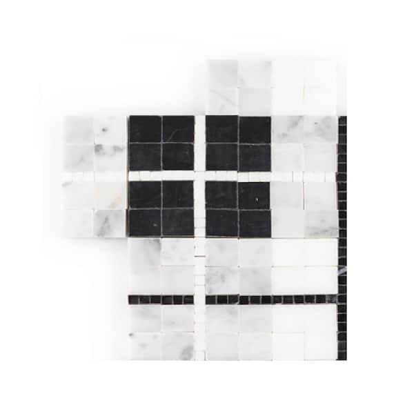 Take Home Tile Sample - Oxford White/Black 4 in. x 4 in. Honed Thassos/Nero Marquina/Carrara Mosaic