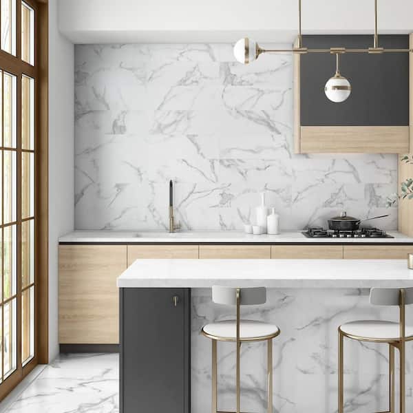 Take Home Tile Sample-Statuario White 4 in. x 6 in. Matte Subway Ceramic Wall Tile Sample