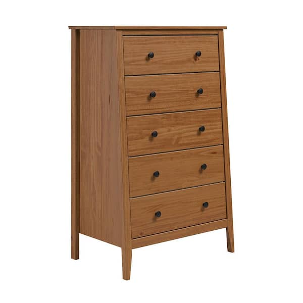 Solid Wood 5-Drawer Dresser 29.92 in. W in Caramel