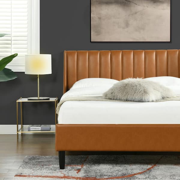 Aspen 63.5 in. Faux Leather Vertical Tufted Upholstered Queen Modern Platform Bed Frame with Headboard