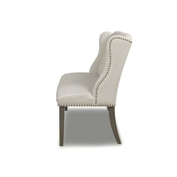 Belle 56 in. Natural White Linen 2-Seater Wingback Armless Settee with Antique Brass Nailheads