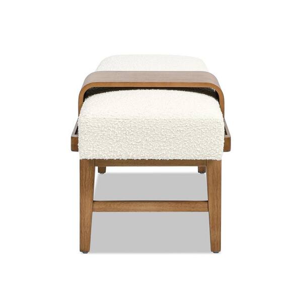 Billie Ivory White Boucle Modern Telephone Dining Bench with Sliding Shelf 52 in.